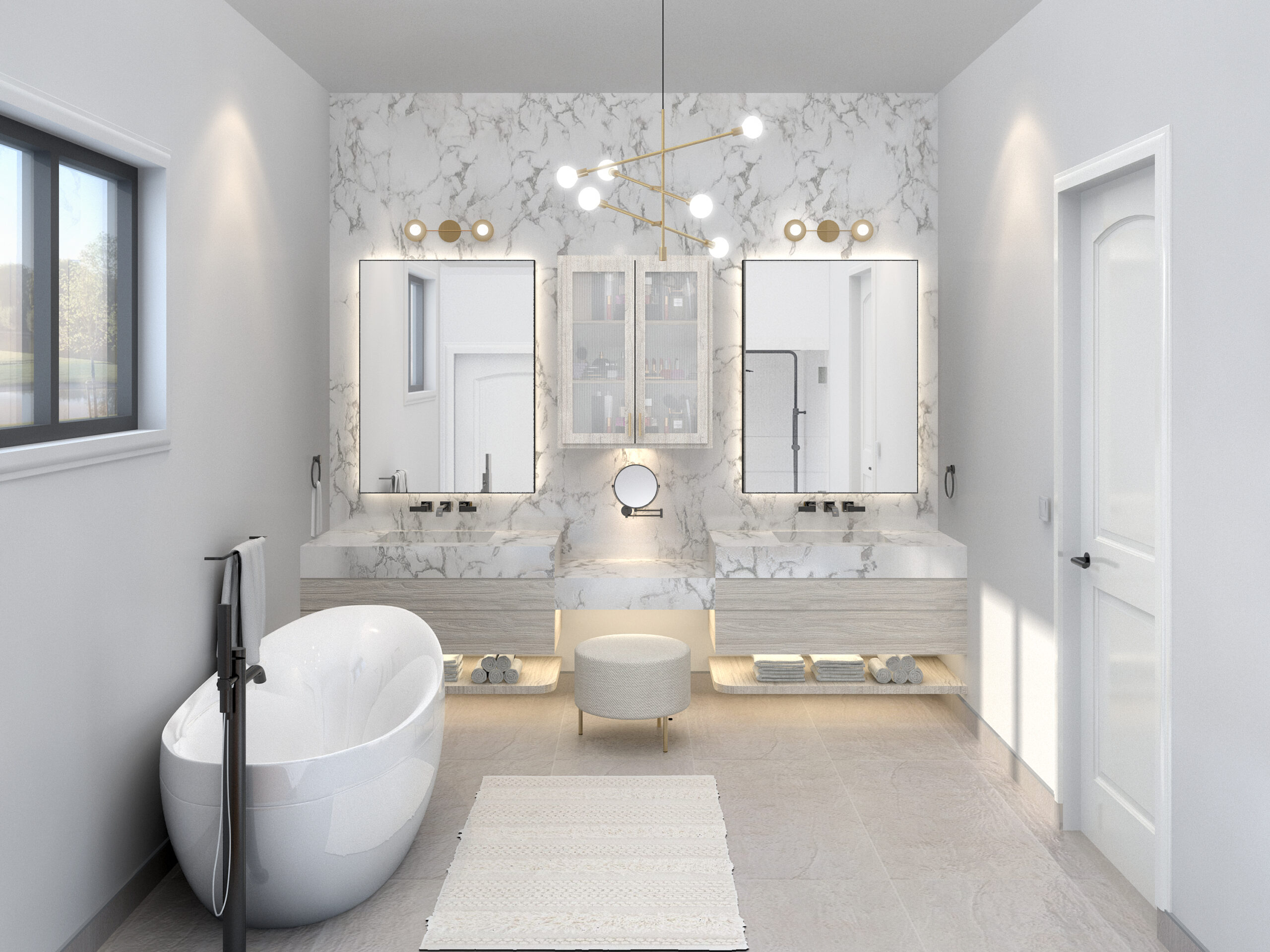 For this 5,000 sq.ft remodeled home, we want every visitor could feel inspired and uplifted. The whole design starts with how to approach the existing arches and make them a statement piece. So we rip off the original floral ceilings and take a modern path to patch the new focal point and layers of spaces. An array of arches will lead your sight and let everyone flow between the rooms fluidly. At each ending point, a set of symmetrical furniture layouts with little variations brings a bit of informality.