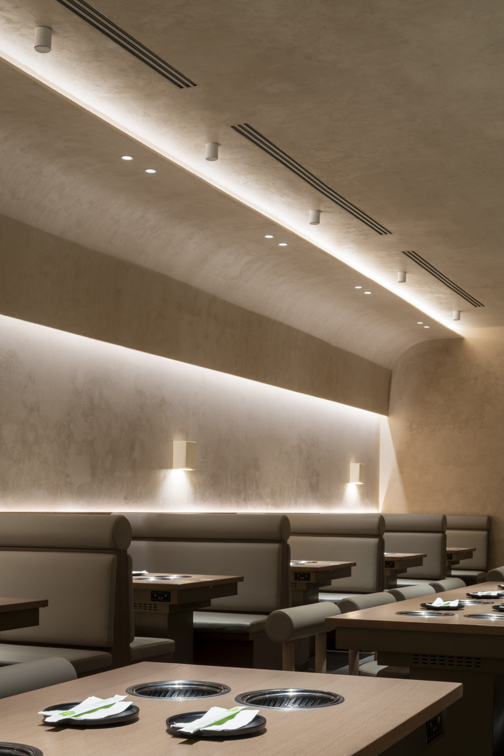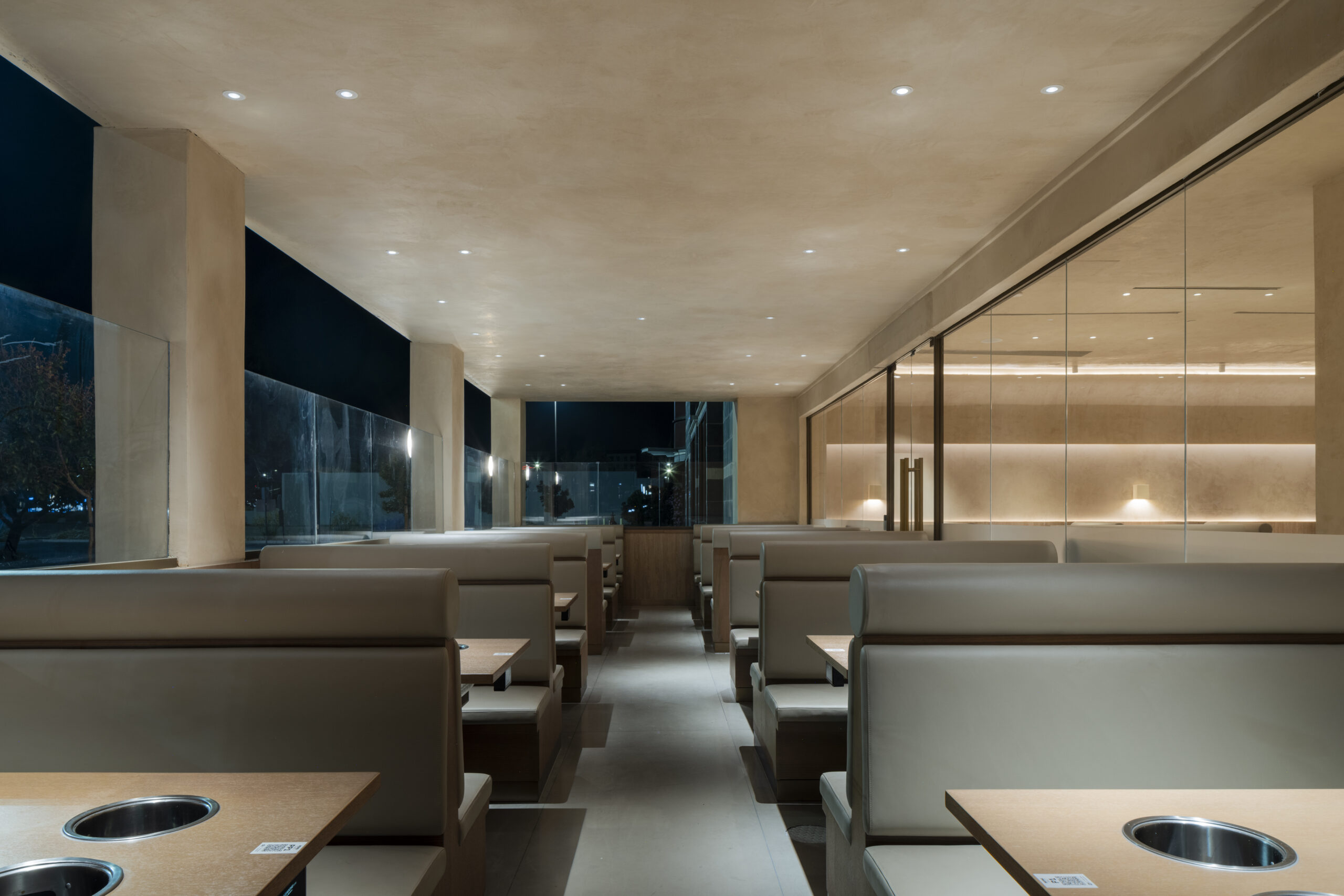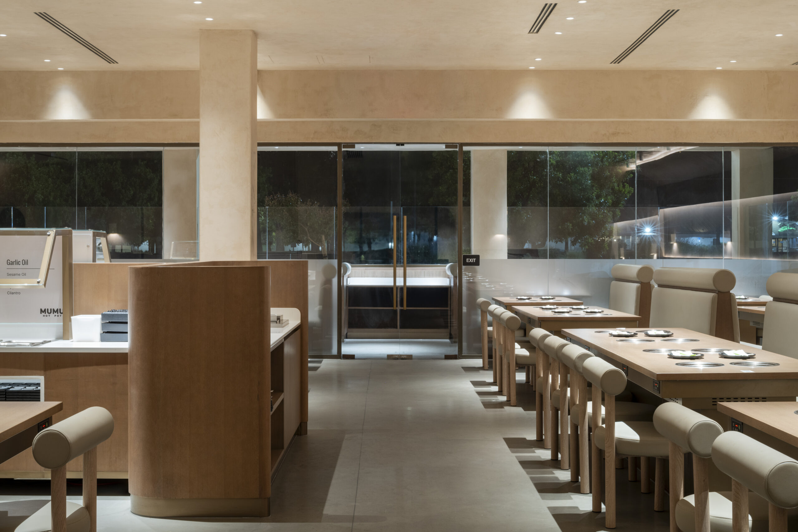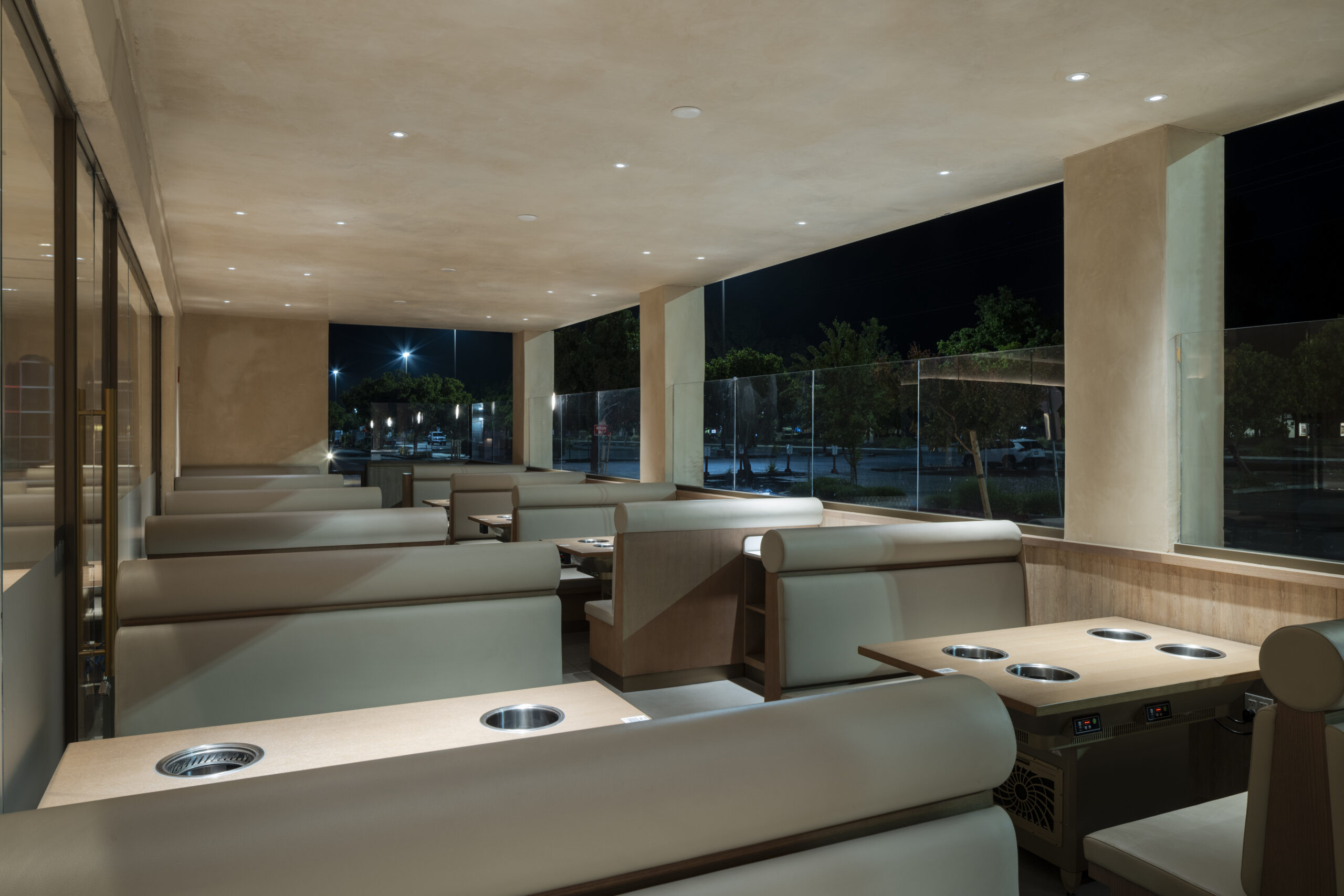 The design for Mumu Hot Pot at Oakridge focuses on creating a warm, approachable environment that supports the social nature of hot pot dining. Rather than leaning on overt symbolism, the space is shaped through clear spatial organization, consistent material language, and an emphasis on comfort and durability. Lime wash finishes, light wood tones, subtle fixtures, and a restrained color palette establish a calm yet inviting backdrop, allowing the dining experience itself to take center stage. Seating layouts are carefully planned to accommodate both small groups and larger gatherings, reinforcing the communal rhythm of the restaurant while maintaining a sense of intimacy at each table.