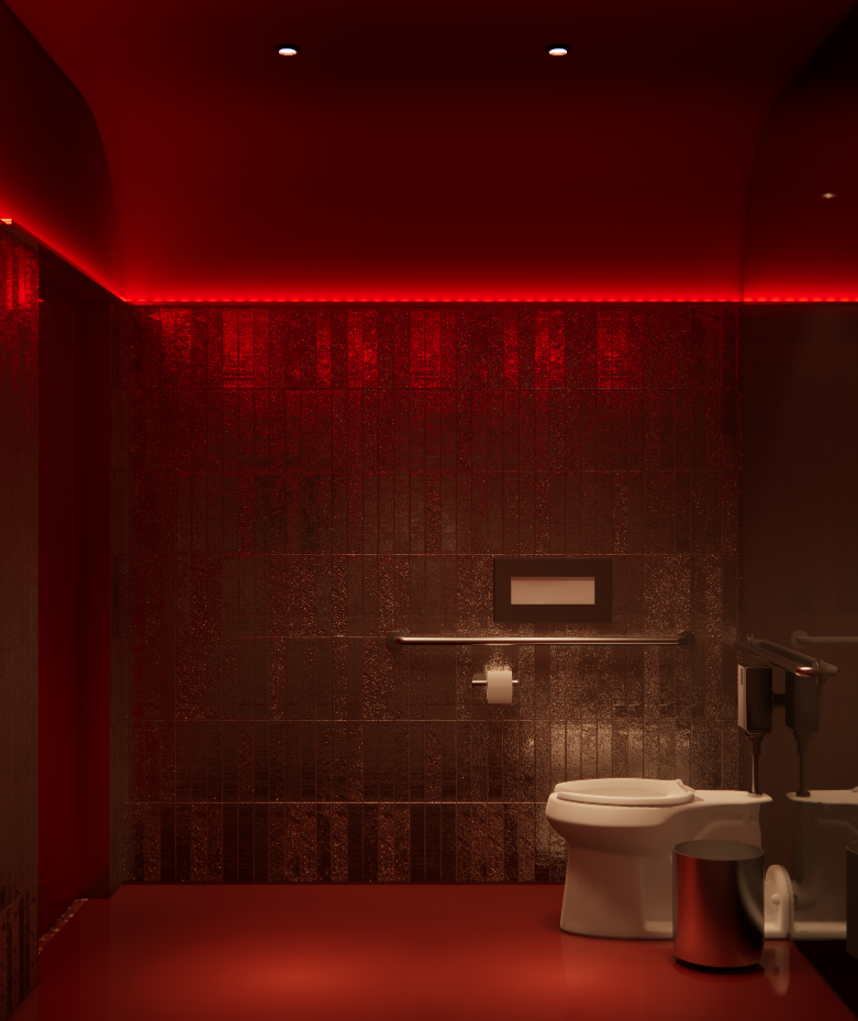 Very Thai brings a bold, all-red ambiance to California’s indoor-outdoor dining scene, blending a cozy drinking culture with a modern Thai aesthetic. The waiting area is seamlessly integrated into the exterior wall, creating a scooped-out entry that leads through a custom arched glass door. Framed in rose gold, this design element extends into the bar, where it transforms into a liquor shelf, tying the entry to the heart of the space. Inside, the dining area is layered to offer distinct experiences, with various seating styles enhancing comfort and privacy.